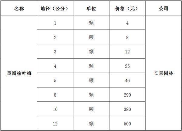 答案:雜交出的榆葉梅,不僅有單瓣也有重瓣的哦!就花朵數(shù)量來(lái)講,重瓣榆葉梅的花瓣比單瓣榆葉梅的要多的多;就觀賞來(lái)講,重瓣榆葉梅的花朵更有層次;就價(jià)格來(lái)講,重瓣榆葉梅的價(jià)格要比單瓣榆葉梅貴一點(diǎn),其實(shí)也貴不了多少,也就相差幾塊錢(qián)的位子。江蘇沭陽(yáng)長(zhǎng)景園林苗圃場(chǎng)里的重瓣榆葉梅的規(guī)格較多,常出售的規(guī)格一般在2公分--10公分這樣,以下是小編總結(jié)的一份價(jià)格表,具體價(jià)格請(qǐng)撥打電話聯(lián)系。